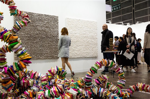Further highlights include Polly Apfelbaum's strips of textile that are combined to form a colorfully woven painting; Rashid Johnson's tropical enclave containing various unexpected elements from sculptures made with shea butter to video portraits; Katherine Bernhardt’s monumental painting with tropical birds, cuddly robots and cigarette stubs, which at once editorializes and summarizes modern culture and the artist herself; an interactive multimedia installation by Nedko Solakov comprising nine sofas in the shapes of the nine Chinese characters constituting the phrase ‘I miss Socialism, maybe’; and Yu Hong's large-scale painting depicting a famous Chinese fable widely cited in both modern Chinese art history and Chinese Communist narratives. The work focuses on how the Socialist narrative still perseveres in Chinese society and explores the ways its ideology corresponds to the visual legacy of Soviet Socialist Realist heritage.